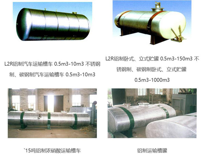 不銹鋼、碳鋼槽車(chē)、儲(chǔ)罐系列】 工業(yè)純鋁板制汽車(chē)運(yùn)輸槽車(chē)、臥式、立式貯罐、高位槽。(主要用于貯運(yùn) 濃硝酸、冰醋酸等腐蝕液體)不銹鋼、碳鋼制各種汽車(chē)運(yùn)輸槽車(chē),臥式、 立式貯槽,高位槽計(jì)量槽。特殊規(guī)格可按用戶(hù)需求設(shè)計(jì)、制造。
